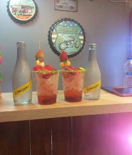 Limón, sal, pimienta, con un toppings de fruta, acompañado con soda al gusto